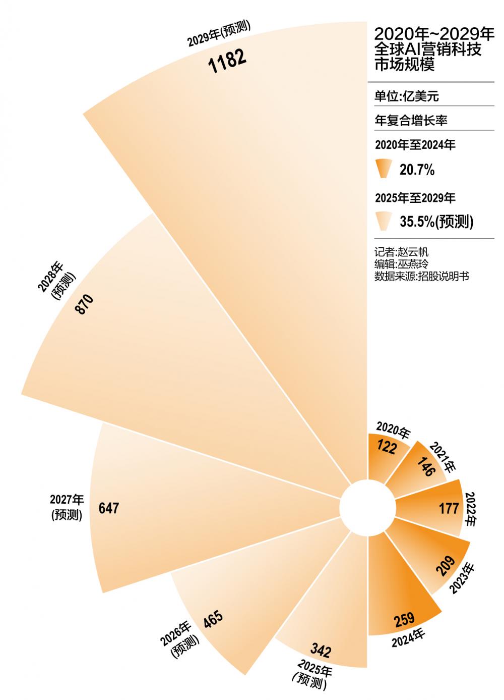 根据弗若斯特沙利文数据,营销科技市场的市场规模由2020年的122亿美元增至2024年的259亿美元,2020至2024年的年复合增长率为20.7%。预计到2029年,市场规模将达到1182亿美元,2024年至2029年的年复合增长率为35.5%。