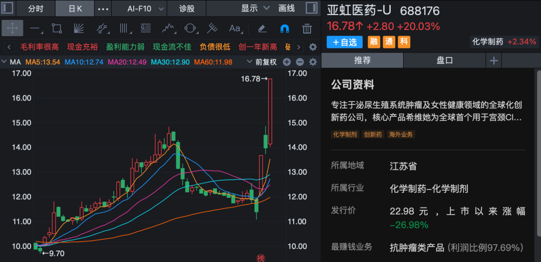 生物制品、化学制药、创新药、减肥药等板块指数也纷纷大涨超2%。亚虹医药20%涨停,3个交易日内实现2个涨停板;万泽股份、华康洁净、华兰股份等涨停或涨超10%。