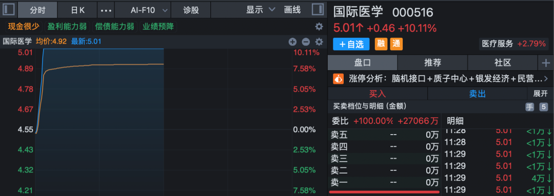 医药生物股早间集体走强,免疫治疗方向领涨,板块指数放量大涨逾3%,半日成交超昨日全天成交。国际医学开盘仅约7分钟直线拉涨停,塞力医疗亦快速封板,中源协和、荣昌生物等涨幅居前。