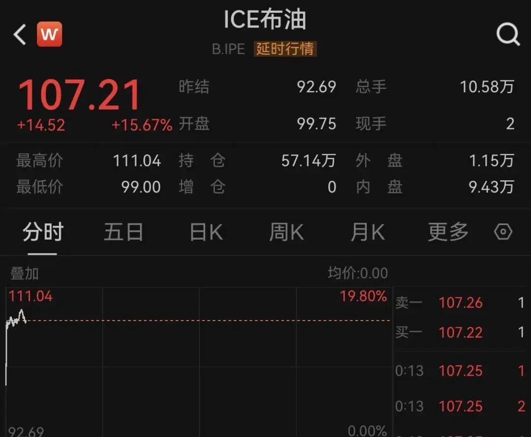 原油则继续暴涨,截至发稿,布油大涨逾15%。