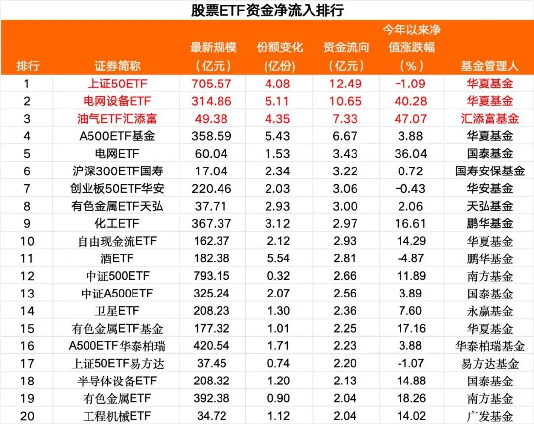 数据显示,头部基金公司旗下部分ETF净流入步伐持续。