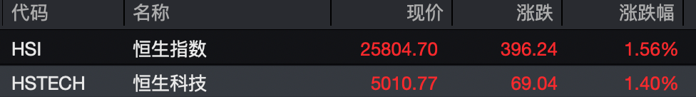 港股市场今天上午亦表现强势,恒生指数盘初涨幅一度超过1.7%,恒生科技指数盘初一度涨2%,目前涨幅有所收窄。