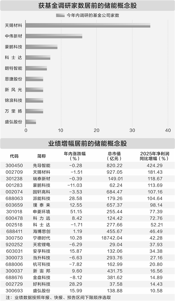 随着产业快速发展,储能概念股获得机构持续关注。统计显示,今年以来,有12只个股获基金公司调研,天赐材料、中伟新材、豪鹏科技的调研基金公司家数居前,分别为35家、16家、9家。