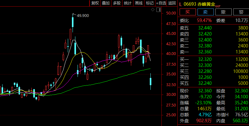 港股赤峰黄金盘中跌超20%,000020,盘中“天地板”!