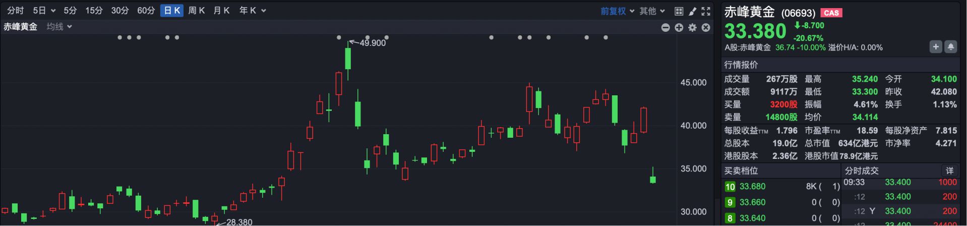 市场焦点方面,黄金股继续下跌。其中,赤峰黄金下跌近20%,紫金矿业跌超6%,灵宝黄金跌超7%,山东黄金、招金矿业、中国黄金国际等跌超4%。