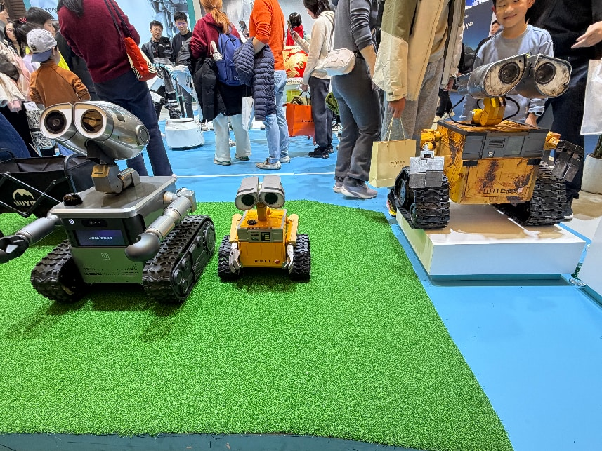 在3月12日-15日举办的AWE2026上,乐享科技展示履带式机器人W1和大小瓦力机器人。企业供图