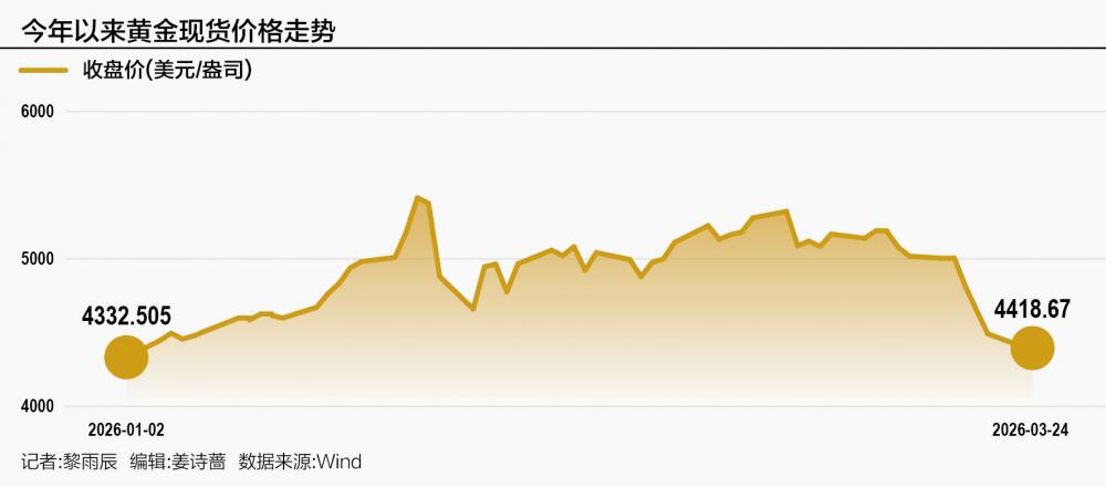 3月23日,现货黄金自4500美元以上一度跌破4100美元点位,将年内涨幅悉数回吐。同日,沪金主力合约跌8.62%。就在刚刚过去的3月16—20日,现货黄金已经跳水10.52%,创下1983年来最大单周跌幅。