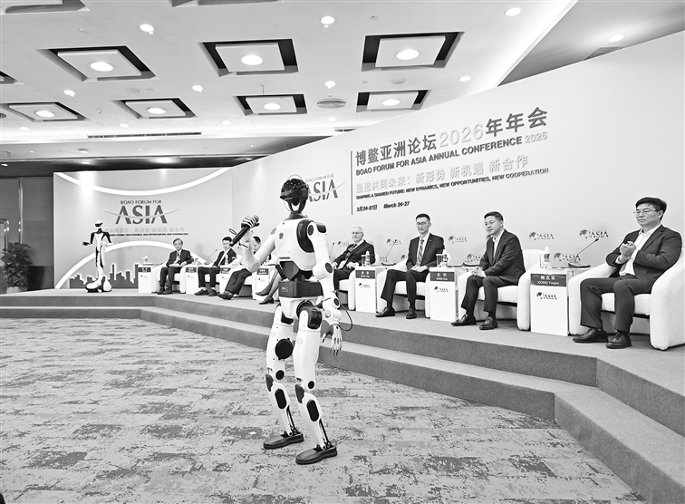 3月25日,博鳌亚洲论坛2026年年会现场,人形机器人“具身天工3.0”、“Q5”依次智能自我介绍,百度智能云数字人ViviDora以全息形态参与探讨,一场充满科技感的开场,拉开“人形机器人的进阶与飞跃”分论坛帷幕。