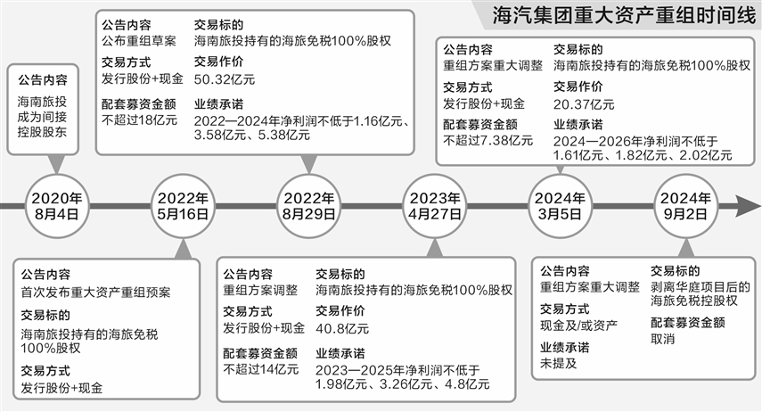自首次公告收购海旅免税至今,海汽集团的重组进程已持续近四年,其间重组方案历经多次修改,几度中止,经过多轮监管问询,前景至今仍充满不确定性。