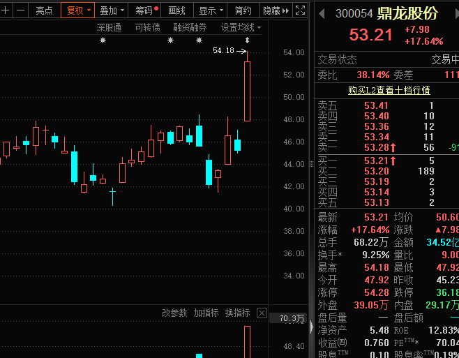 鼎龙股份(300054)发布一季报,预计净利润为2.4亿元~2.6亿元,同比增长70.22%~84.41%,环比增长19.53%~29.49%。公司业务发展态势持续向好,半导体材料业务营业收入实现稳步增长。股价方面,该股今日高开高走,最高涨超19%,直逼涨停。