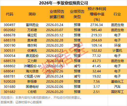 14家公司预告首季业绩