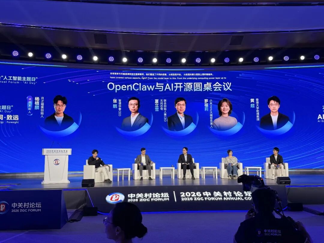 3月27日,在2026年中关村论坛年会上,月之暗面CEO杨植麟罕见担任主持人,与智谱CEO张鹏、无问芯穹联合创始人兼CEO夏立雪、小米MiMo大模型负责人罗福莉、香港大学助理教授黄超展开了一场关于“龙虾”和AI开源的深度对话。