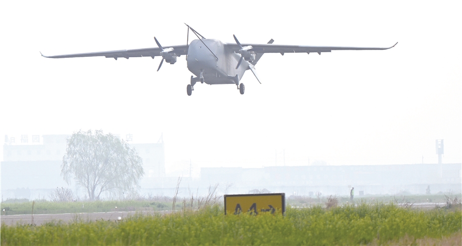 3月31日上午,我国首款7吨级固定翼运投无人机长鹰-8在郑州上街机场首飞成功。长鹰-8运投无人机是国内首款通过实机验证的7吨级无人运投平台,被誉为“空中重卡”,填补了我国7吨级货运无人机平台空白,标志着我国在高端智能航空物流装备领域取得关键自主技术跨越。 新华社记者 郝源/摄