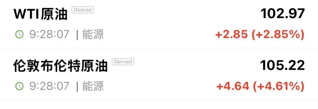 市场方面,布伦特原油期货涨幅扩大至4.61%,至每桶105.22美元。COMEX白银期货跳水跌3.85%,现报73.153美元/盎司。