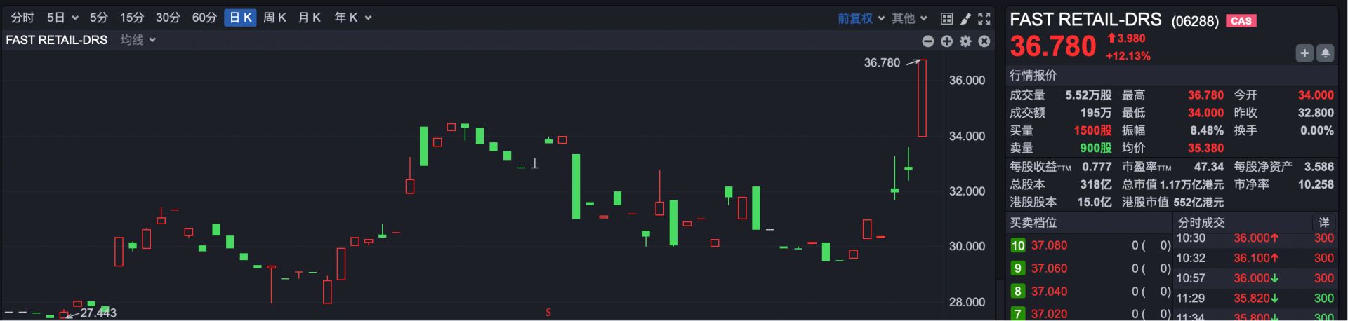 优衣库母公司迅销(FAST RETAIL)(HK06288)今日涨超12%,创下历史新高。