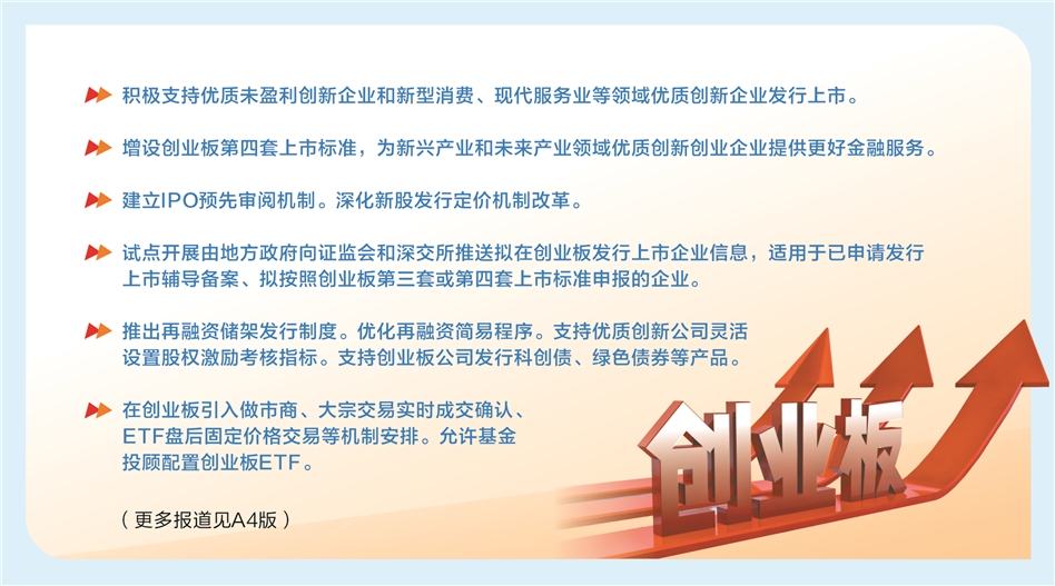 证监会表示,《创业板意见》牢牢把握防风险、强监管、促高质量发展的工作主线,围绕持续深化资本市场投融资综合改革,优化创业板全链条创新和监管制度体系,进一步提高制度包容性、适应性,提出了一系列针对性的改革举措。