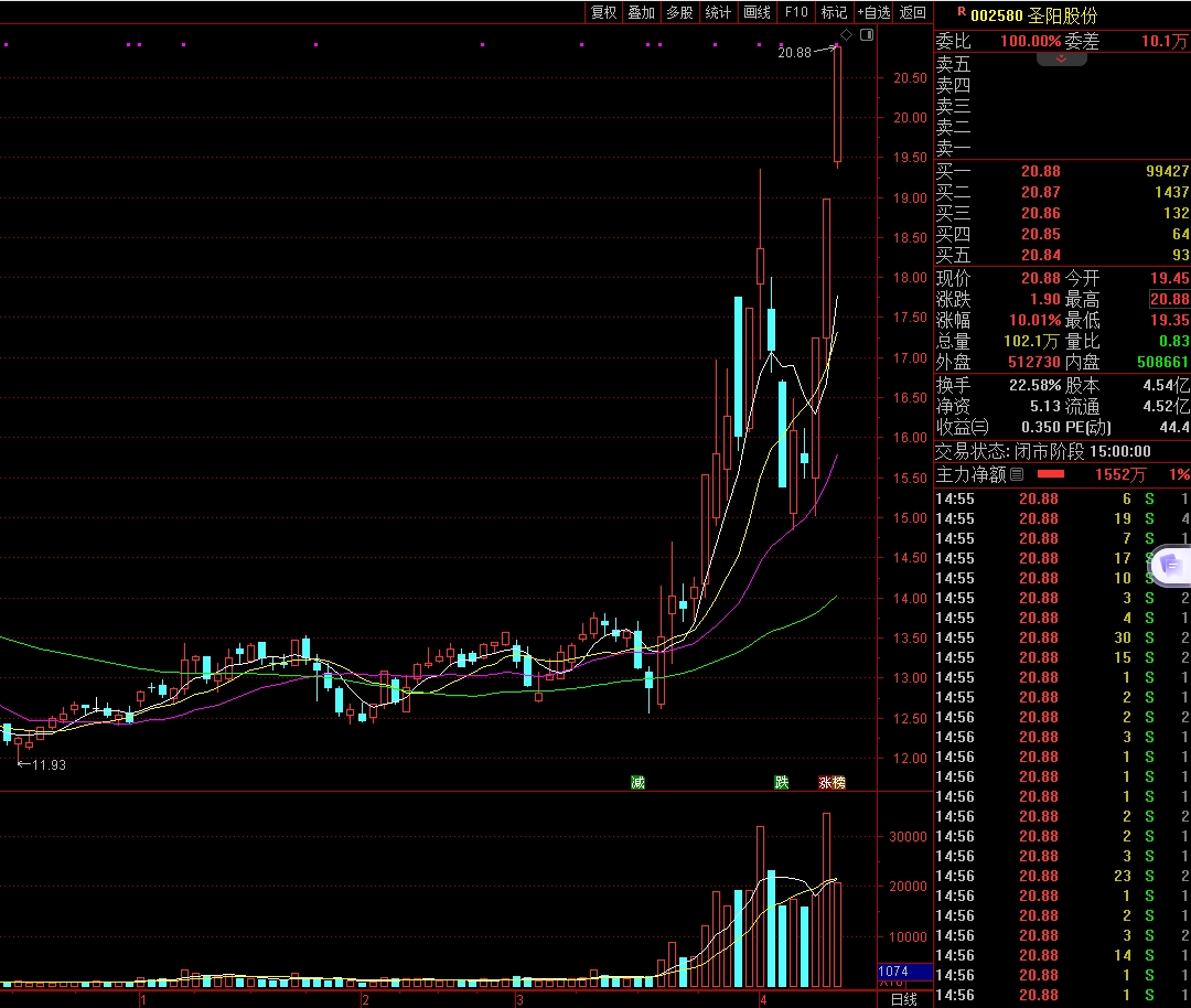 人民财讯4月13日电,圣阳股份4月13日再度涨停,为第三个交易日涨停。其全天成交金额20.75亿元,盘后龙虎榜数据显示,活跃游资国泰海通证券北京知春路证券营业部买入6042万元,卖出183万元;另外,中信建投证券杭州庆春路证券营业部买入3031万元,卖出58万元。卖出方面,也有活跃游资现身,国泰海通证券上海长宁区江苏路证券营业部卖出3877万元,买入87万元。