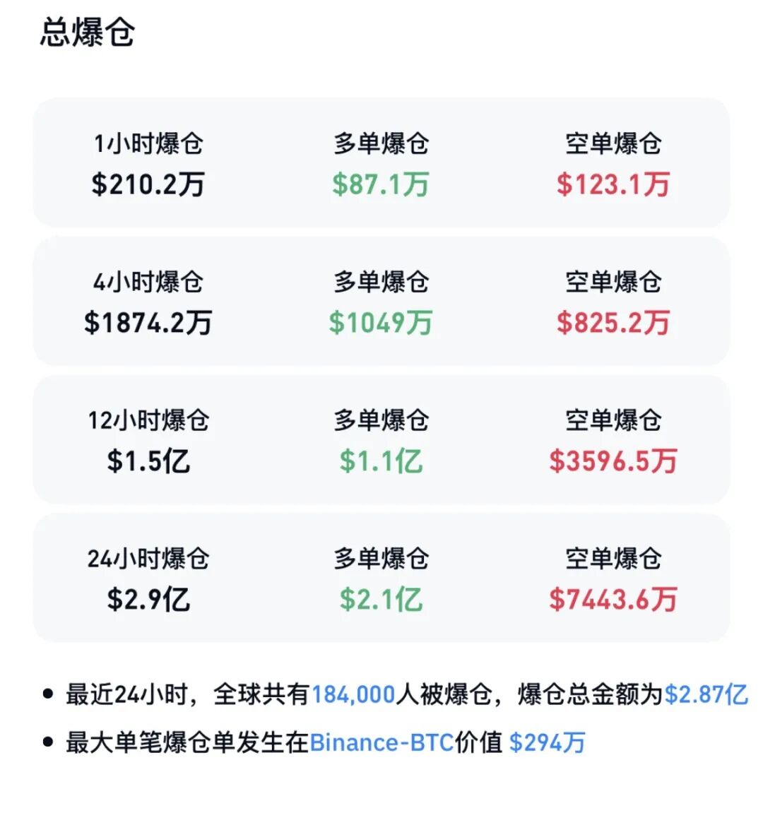 最近24小时,全球超18万人爆仓。