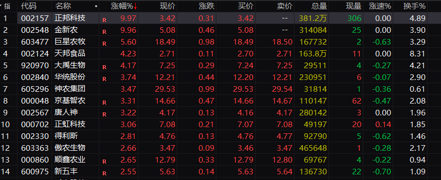 今年以来,猪肉价格持续下跌,但4月中旬过后,生猪期货明显企稳。今天早盘,猪肉概念股迎来集体爆发。金新农平开之后持续拉升,仅用21分钟便封死涨停。正邦科技亦在随后涨停。除双汇发展之外,整个板块集体上涨。