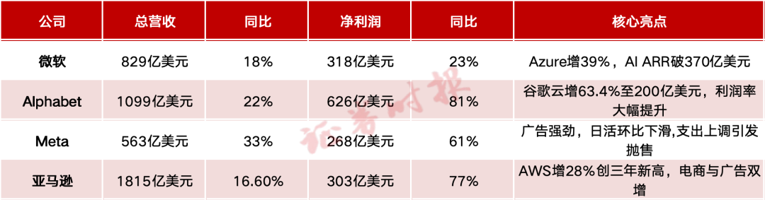 从总体数据上看,四巨头营收与利润均保持强劲增长,核心业务韧性凸显。