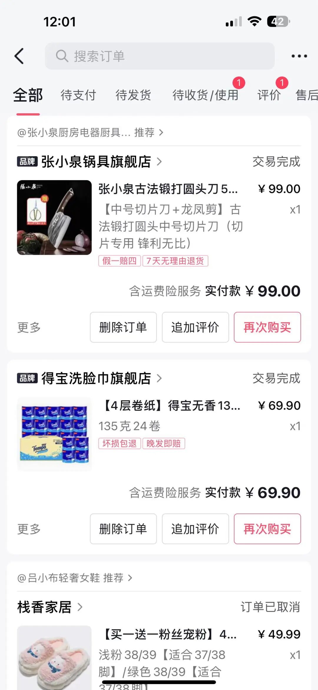 (朱女士部分购物记录截图)