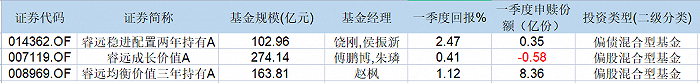 昨日,睿远基金旗下三只公募产品悉数披露了一季报。从业绩来看,三只基金在一季度均取得正回报,其中偏债混合型的睿远稳健配置回报率为2.47%,超过涨了0.41%的睿远成长价值和赵枫的睿远均衡价值(1.12%)。