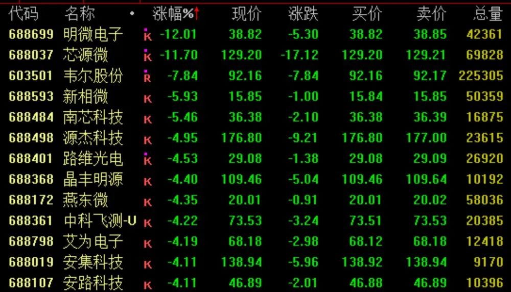 半导体板块今日大幅下挫,截至收盘,明微电子、芯源微跌约12%,韦尔股份跌近8%,盘中一度触及跌停;新相微、南芯科技跌超5%。
