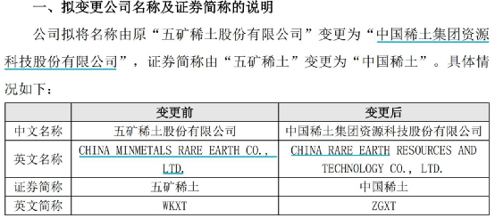 对于此次更名“中国稀土”,五矿稀土方面称,鉴于实控人已变更为中国稀土集团,为落实稀土产业高质量发展,更名有助于提升品牌效应以及市场影响力。