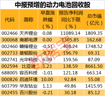 统计显示,A股中布局动力电池回收的上市公司共有21家,早盘11股上涨,超越科技、迪生力、启迪环境涨停。10只概念股业绩预增,天齐锂业、南都电源、赣锋锂业预计增幅居前。