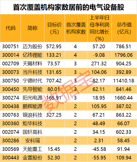 电力设备行业中,38股为机构首次覆盖的评级股,迈为股份、亿纬锂能获四家机构首次覆盖评级,近期关注度上升较多。