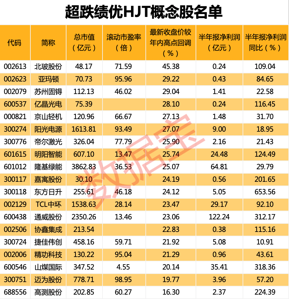 值得关注的是,不少绩优个股的股价已经较年内高点回调。例如,今日高开大涨的迈为股份,最新收盘价较年内高点回调近20%;还有北玻股份、亚玛顿、苏州固锝、亿晶光电等股的股价回调幅度超25%。