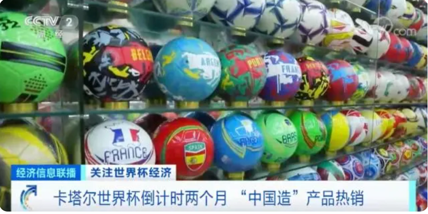 据央视财经报道,尽管距离开赛还有两个月的时间,但是和世界杯相关的产品早已经在浙江义乌成为紧俏货。在义乌国际商贸城的体育用品销售区,各种与世界杯相关的纪念品、足球、球衣、手摇旗、彩绘笔等产品热销。