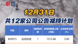 12月31日,共12家公司公告减持计划
