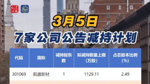 3月5日,7家公司公告减持计划