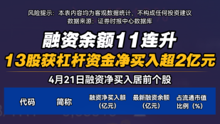 融资余额11连升!13股获杠杆资金净买入超2亿...