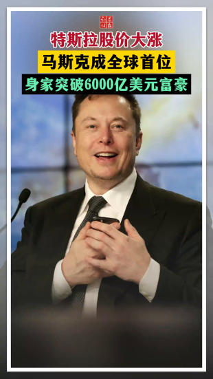 特斯拉股价大涨 马斯克成全球首位身家突破6000亿美元富豪