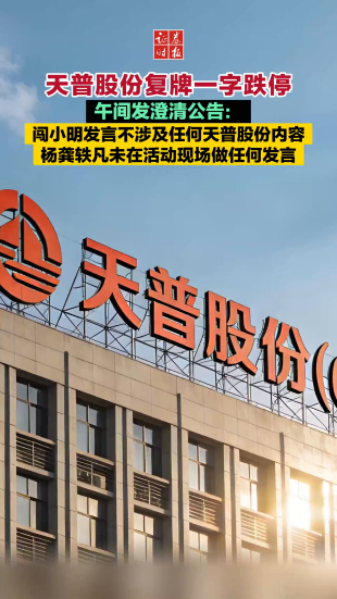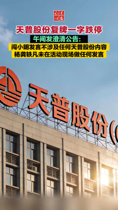 天普股份复牌一字跌停 午间发澄清公告:闯小明发言不涉及任何天普股份内容 杨龚轶凡未在活动现场做任何发言