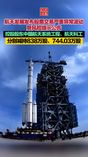 航天发展发布股票交易严重异常波动暨风险提示公告 控股股东中国航天系统工程、航天科工分别减持838万股、744.03万股