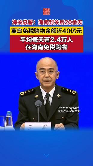 海关总署:海南封关后20余天,离岛免税购物金额近40亿元,平均每天有2.4万人在海南免税购物