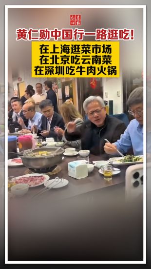 黄仁勋中国行一路逛吃!在上海逛菜市场、在北京吃云南菜、在深圳吃牛肉火锅