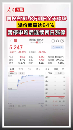 国投白银LOF明日全天停牌,溢价率高达64%,暂停...