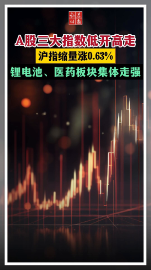 A股三大指数低开高走 沪指缩量涨0.63% 锂电池、医药板块集体走强