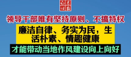 领导干部唯有坚持原则、不搞特权,廉洁自律、务实为民,生活朴素、情趣健康,才能带动当地作风建设向上向好