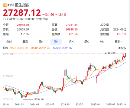 恒生指数、恒生科技指数,双双创四年新高