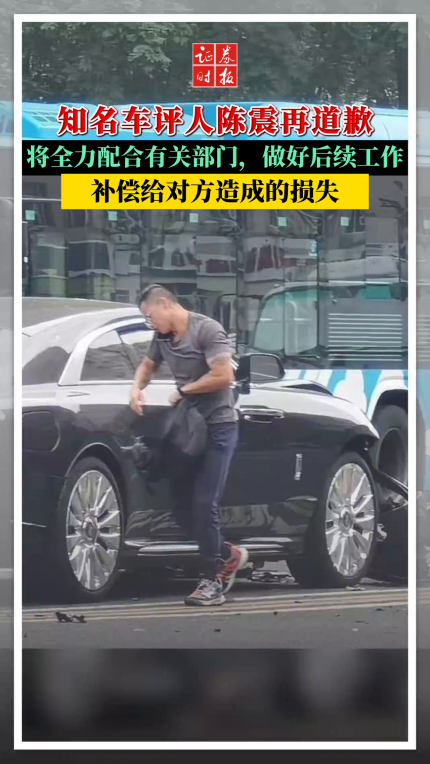 知名车评人陈震再道歉,将全力配合有关部门,做好后续工作,补偿给对方造成的损失