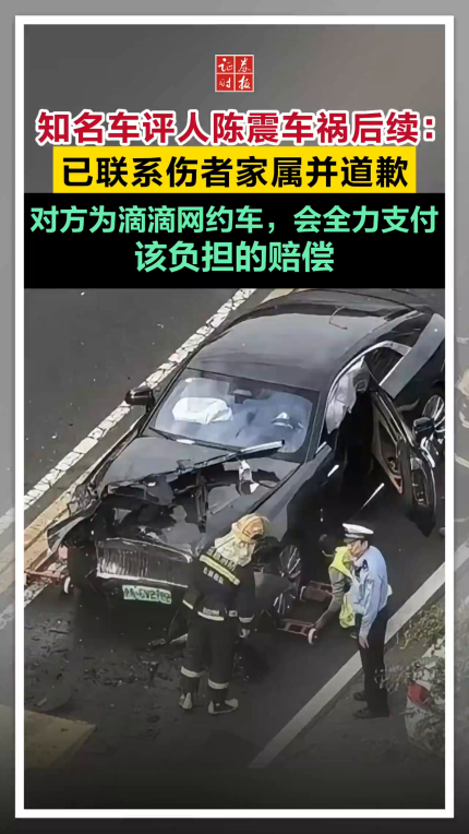 知名车评人陈震车祸后续:已联系伤者家属并道歉,对方为滴滴网约车,会全力支付该负担的赔偿