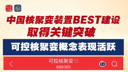 中国核聚变装置BEST建设取得关键突破 可控核聚变概念表现活跃