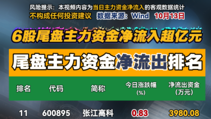 6股尾盘主力资金净流入超亿元