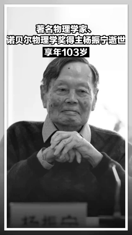 著名物理学家、诺贝尔物理学奖得主杨振宁逝世 享年103岁