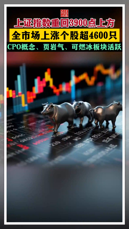 上证指数重回3900点上方 全市场上涨个股超4600只 CPO概念、页岩气、可燃冰板块活跃